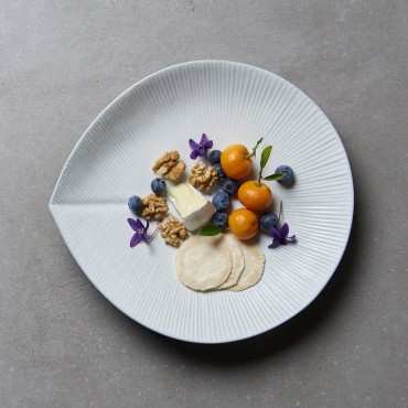 The Snow Leaf range features a pure matt white, powdered like snow. An elegant pattern of lines compliments the organic shapes inspired by leaves found in the Alpine region surrounding the kiln.