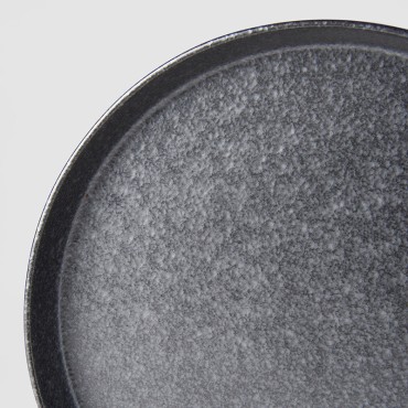 Step up your dining game with a plate with a dramatic high rim combining function with bold aesthetics. Measuring 25 cm in diameter, this plate serves everything from vibrant salads to elegant entrees. It's sleek with a matte black finish and raised edges that exude both contemporary elegance and a traditional look. It also offers practical benefits by keeping sauces, dressings, and side garnishes neatly contained.