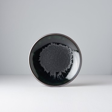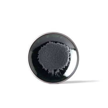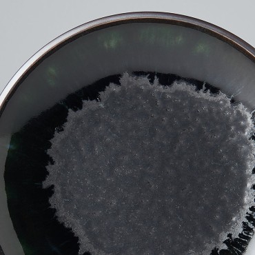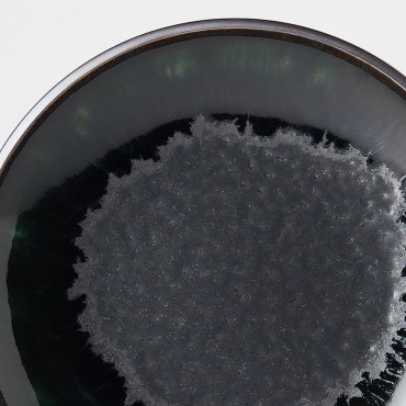 The Matt and Shiny Glaze has subtle matt textures appearing across parts of the inner surface. The contrast between the glossy finish and the soft, matt areas creates a varied surface look, giving depth and character to the otherwise dark glaze.